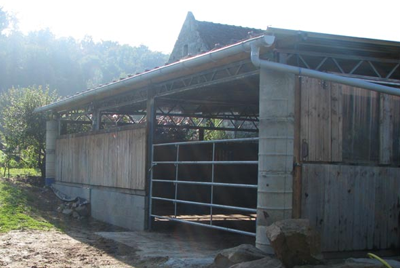 C’est un local clos, en partie ou totalement couvert, relativement grand. Plusieurs chevaux y sont hébergés.