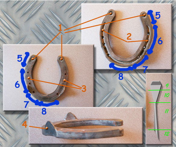 Fer à cheval description vue de face et de profil