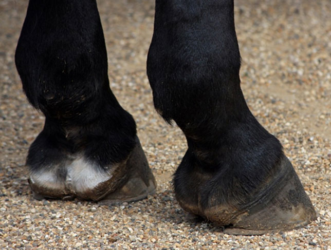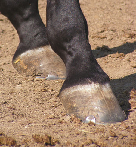 Le poids du cheval se répartie au deux tiers sur son avant-main, la corne des sabots des antérieurs s’use donc plus vite que celle des postérieurs. Aussi un cheval qui travaille doit au minimum être ferré des antérieurs.